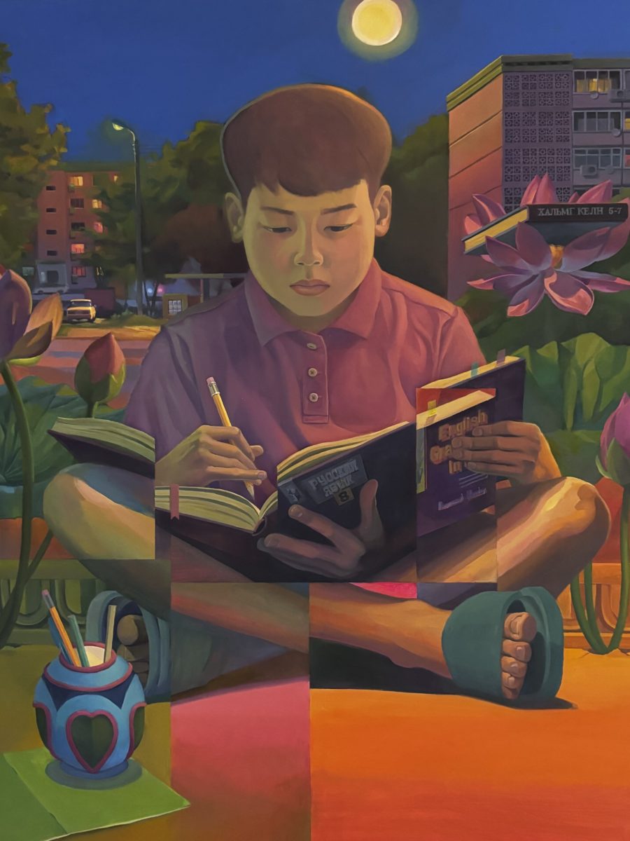 Работы секции живописи продолжают тему образования и посвящены «культу знаний», укоренившемуся в коллективном сознании жителей Калмыкии со второй половины прошлого века. Годы массовой депортации калмыков в Сибирь преподали суровый урок: представители национальных меньшинств поняли, что хорошее образование – обязательное условие для построения достойной жизни в собственной стране. Если приход зимы в Калмыкии ассоциируется с буддийским праздником Зул, а весны – с Цаhан саром, то наступление осени связано с отбытием калмыцких студентов на учебу вдали от дома. Это явление носит массовый характер уже не одно десятилетие. Произведения секции живописи – это анализ данного явления, а также попытка автора переосмыслить прожитый опыт.