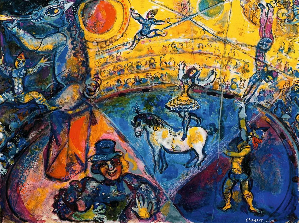 К цирку у художника было особое отношение. Он считал его более искренним, чем театральное искусство, ведь акробаты и гимнасты не притворяются кем-то на сцене, а демонстрируют чудеса техники – на пределе человеческих возможностей и с риском для жизни. Шагал утверждал: «Для меня цирк – это волшебство, которое появляется и исчезает, как мир. Цирк будоражит. Он искренний». Во многих театральных работах художник делал отсылки к цирковым образам, которые, по его признанию, воплощали для него некие высшие смыслы и давали ответы на важнейшие вопросы: «При виде лошадей, которые все время словно находятся в состоянии экстаза, я думал: может, они счастливее нас? Можно стать на колени перед лошадью и помолиться. Она всегда опускает глаза – из скромности. Эхо конских копыт отдается где-то в животе. Я бы промчался верхом на коне – в первый и последний раз – по сверкающей арене жизни. Я почувствовал бы трансцендентность мира, когда ты уже не одинок среди молчаливых созданий, которые думают о нас, но вот что – знает лишь Бог».
