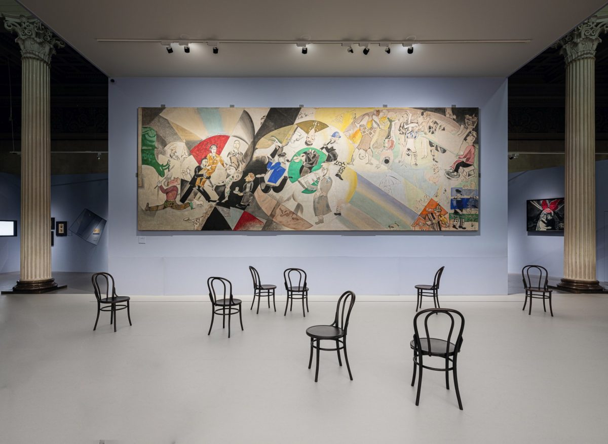 После революции Шагал задумал превратить Витебск в столицу искусств: украсил город к первой годовщине Октября, открыл художественное училище. Но проиграл борьбу за лидерство энергичному Малевичу, тоже перебравшемуся в Витебск. В итоге Шагал уехал в Москву, где вскоре получил предложение о сотрудничестве от Государственного еврейского театра (ГОСЕТ). И написал восемь огромных ярких панно, украсивших небольшой зал на 90 мест. Воздействие их на зрителей было столь сильным, что зал прозвали «шагаловской коробочкой». Впрочем, история с ГОСЕТом не получила продолжения, более того – художнику даже не заплатили за проделанную работу. Панно, за исключением двух, чудом уцелели в смутные времена, когда работы художников-авангардистов стали пускать под нож как формалистские. В наши дни шагаловская волшебная «камера-обскура» хранится в Третьяковской галерее.