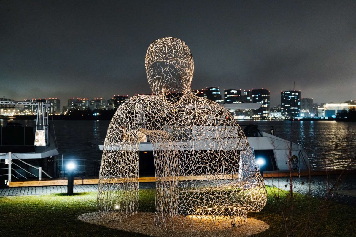 Если вы никогда не были в Сколково, есть повод восполнить пробел. Перед Сколковским институтом науки и технологий расположилась скульптура «Размышление о происхождении человека» художника Антона Смита из ЮАР. Это первая работа знаменитого южноафриканского скульптора в России. Она воплощает сложную гармонию двойственности. Скульптура создана из металла и стекловолокна, но при этом обладает «земным» характером – кажется, что при работе над текстурой лица использовалась глина.