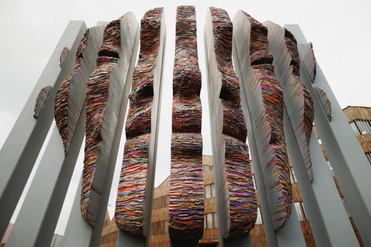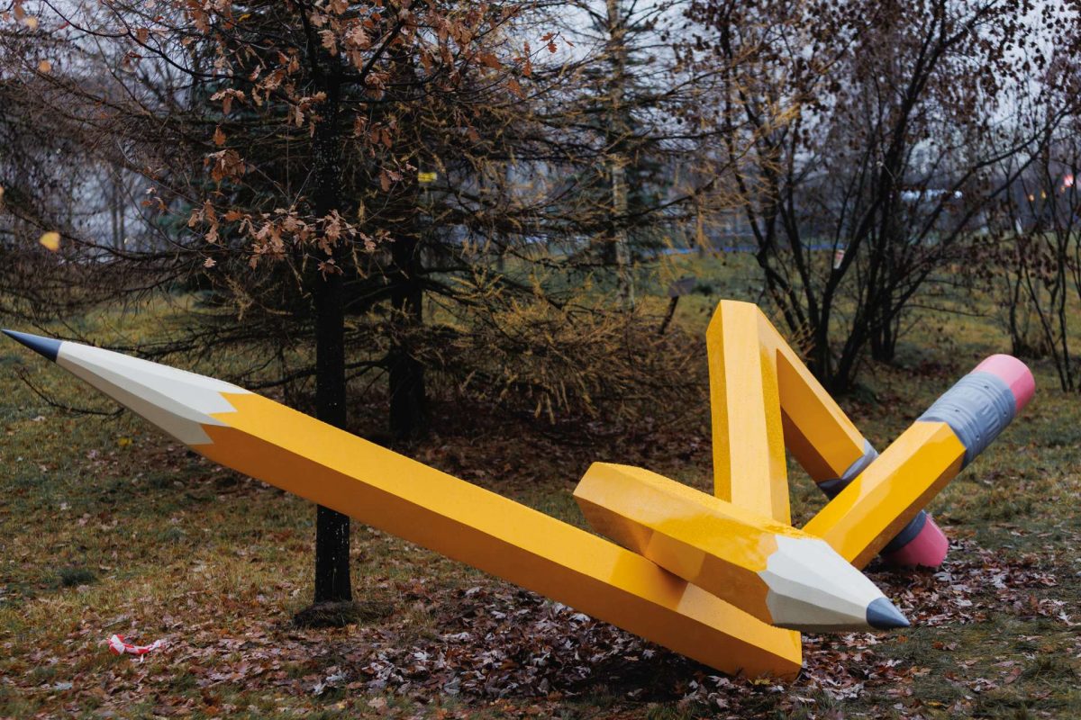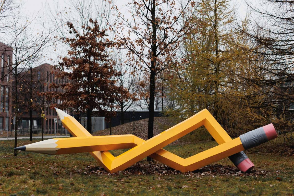 Напротив Технопарка вступил в диалог с ландшафтом паблик-арт-объект «Траектория мысли» Чжоу Сонга. Два переплетенных желтых карандаша китайский художник метафорически определяет как синтез культуры и природы. Инсталляция символизирует инновации в искусстве, культуре и технологиях.
