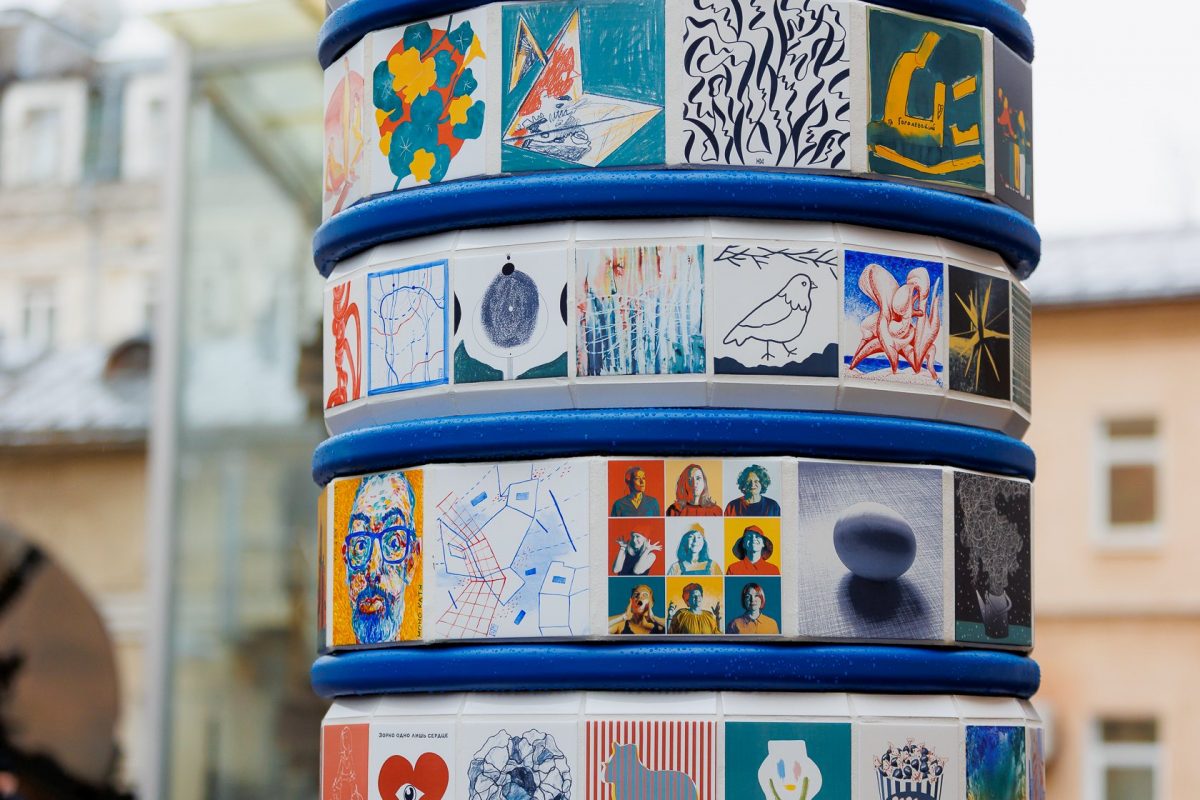 Наконец, во дворе Московского музея современного искусства на Петровке, 25 был установлен арт-объект «Столпотворение», созданный арт-группой 25. Инсталляция представляет собой многоярусную колонну с керамическими плитками, на которых запечатлены образы, ассоциирующиеся со школой, словно коллективный дневник воспоминаний выпускников. В то же время объект отсылает к изразцовой печи XVIII века – символу дома, тепла и созидания. Инсталляция интегрирована в архитектуру исторического ансамбля улицы, где напротив музейной усадьбы высится старинная колокольня Высоко-Петровского монастыря.