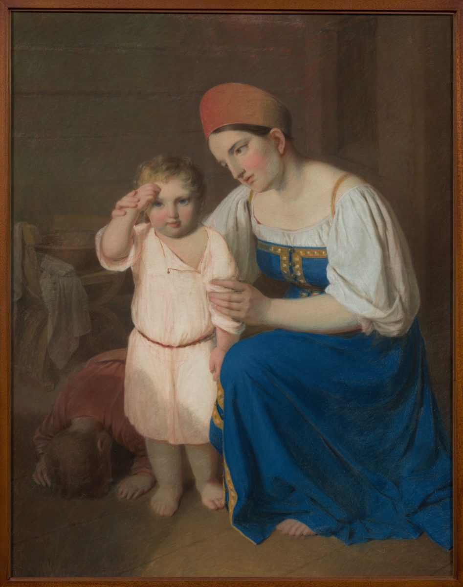 «Хрупкое искусство…» охватывает более чем столетнюю историю пастели в России. Первыми мастерами, работавшими в этой технике, были приглашенные иностранцы. «Столетняя царскосельская крестьянка с семьей» (1768), созданная датчанином Вигилиусом Эриксеном, – редчайший для того времени пример обращения к крестьянской теме.