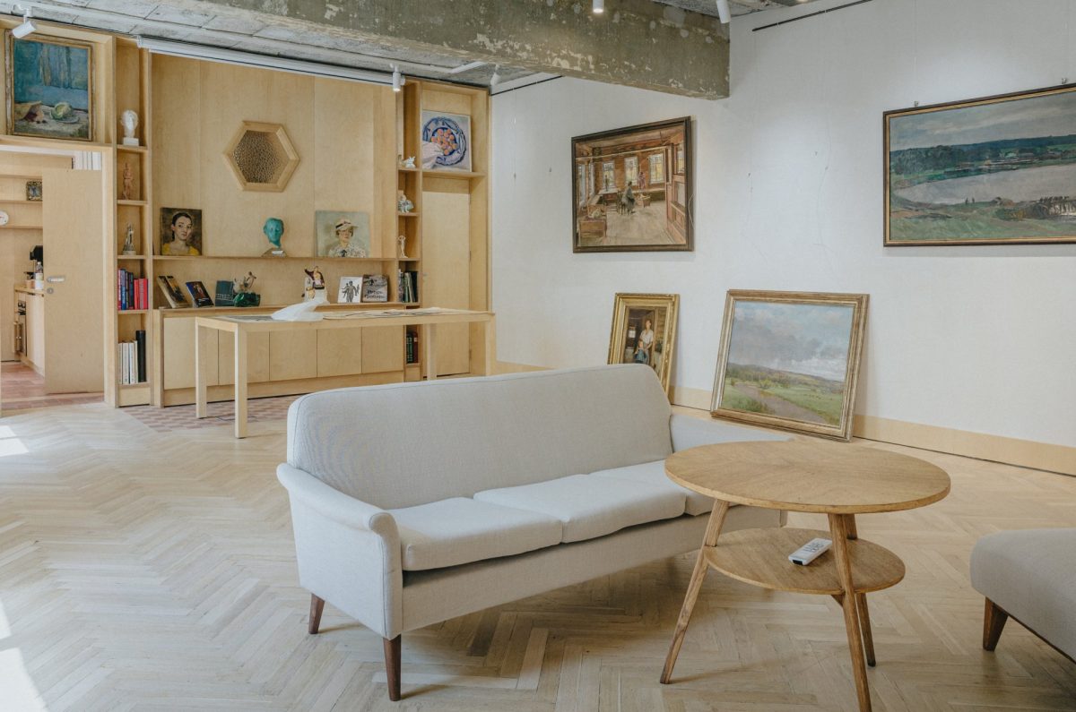 Экспозиция разбита на тематические залы. В одном конце музея расположен «Зал репутаций», где представлены самые разные авторы, в том числе Давид Штеренберг, Сергей Герасимов, Георгий Нисский, Аркадий Пластов, Татьяна Назаренко. На противоположном конце — зал, посвященный детству, с карнавальными костюмчиками медведя и звездочета, принадлежавшими художнику Николаю Терещенко: в них он выступал здесь, в детском саду, на утренниках. Рядом – его же картина, отразившая воспоминания о тех временах.