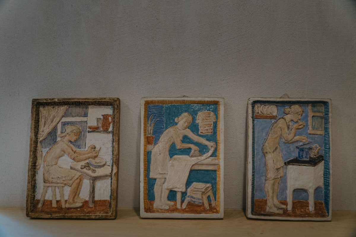 По соседству — зал с обнаженной натурой. Дети художников, как часто бывает, росли на работе у родителей и, конечно, видели позирующих моделей. Здесь можно оценить мастерство не только живописцев и графиков, но и скульпторов — например, пластику танца в статуэтке балерины Веры Каминской, изображенной Верой Янсон-Манизер.