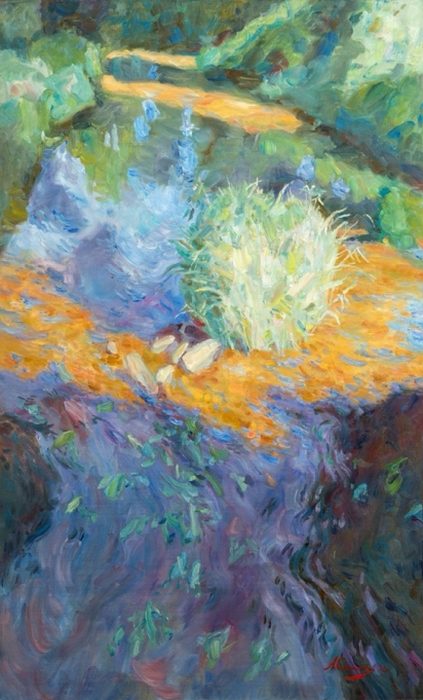 Наблюдая за игрой бликов и отражений в воде, которые никогда не повторяются, Анастасия Соколова передает не только визуальное восприятие момента, рожденного светом, но и то состояние, которое с ним ассоциируется.