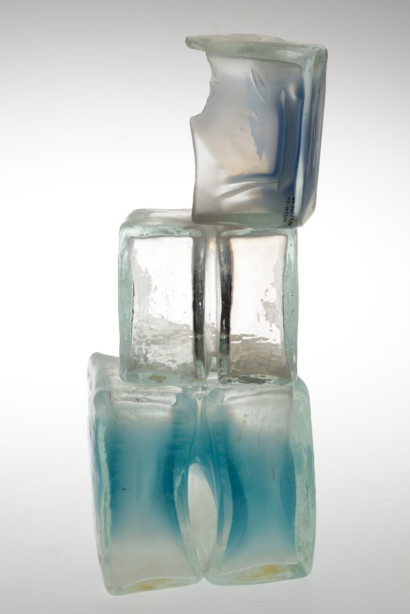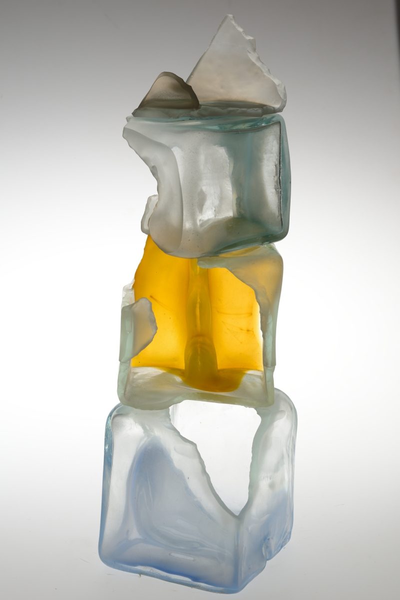 В центральном зале представлена инсталляция «В разрезе времени» – символы, образы эпохи преломляются в полотнах ткани. Это аллюзия течения времени, цикличности жизни, истоков вдохновения и энергии творчества.