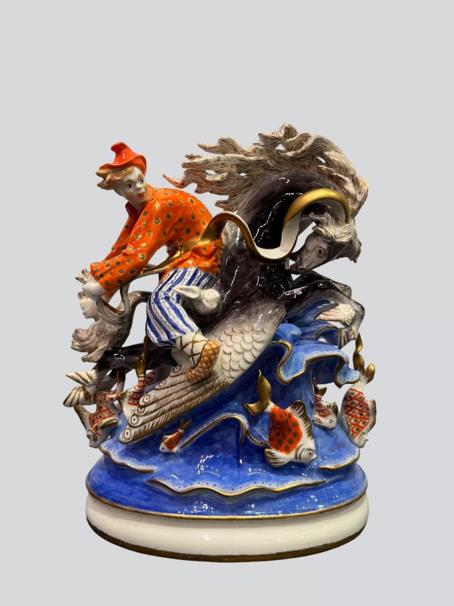 Творческая жизнь Сергея Орлова была долгие годы связана со знаменитым Дмитровским фарфоровым заводом в Вербилках. Одними из первых популярных его работ в фарфоре стали статуэтки на тему русских сказок, в том числе по мотивам известной сказки Петра Ершова «Конек-горбунок». Каждое произведение Орлова уникально, поскольку он не пользовался традиционной для производства фарфора формовкой, а лепил свои произведения руками, как скульптор. Важное место в его творчестве занимала также тема цирка – на выставке можно будет увидеть две статуэтки из триптиха «Большая клоунада».