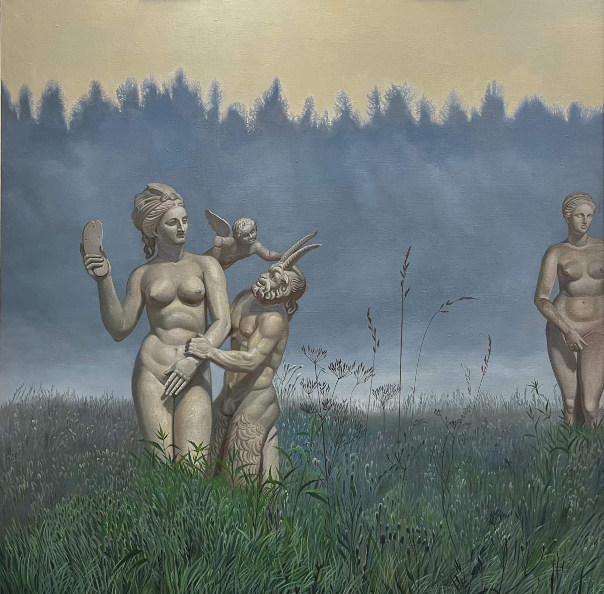 В работах Ивана Коршунова фрагменты античной скульптуры, разбросанные по полям-лугам и редким деревням, на первый взгляд, кажутся чуждыми в этой среде. Однако при внимательном рассмотрении становится понятно, что все эти проявления классической традиции поглощаются и присваиваются природой, словно врастая в нее, становясь ее частью. Взаимодействие античности с бесконечной перспективой русских пейзажей становится своеобразным отражением процесса естественного «приживания» артефактов, из которых выросла вся европейская культура, на разных сценах. В российских реалиях античная классика давно растворилась и преобразовалась в нечто новое, что подчеркивает уникальность и многогранность нашей культуры.