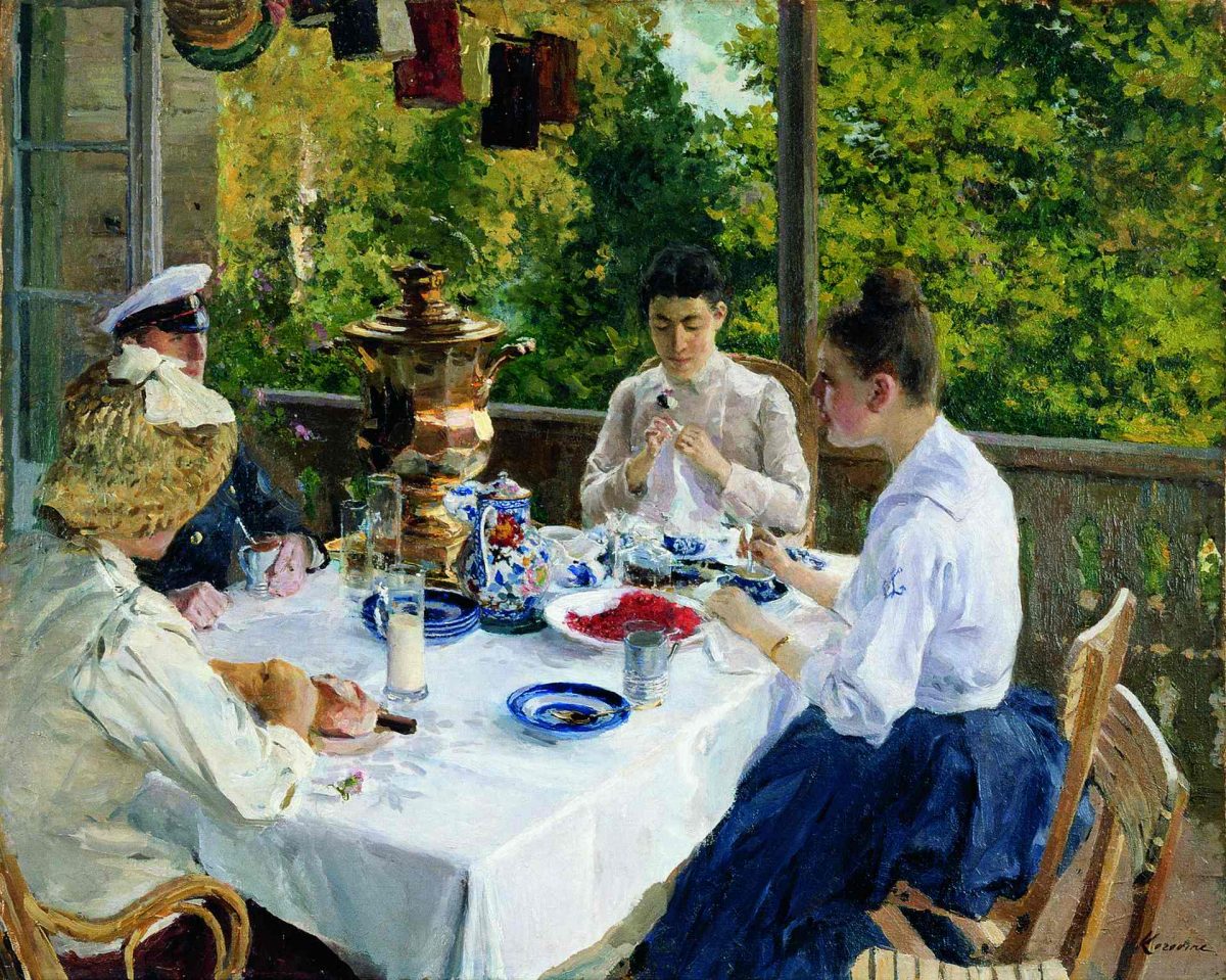 Темы связи поколений и постепенного увядания и ухода старших показаны через образ русской усадьбы. И здесь одно из центральных полотен – знаменитый поленовский «Бабушкин сад», компанию которому составляют работы Марии Якунчиковой-Вебер, Сергея Виноградова, Станислава Жуковского.