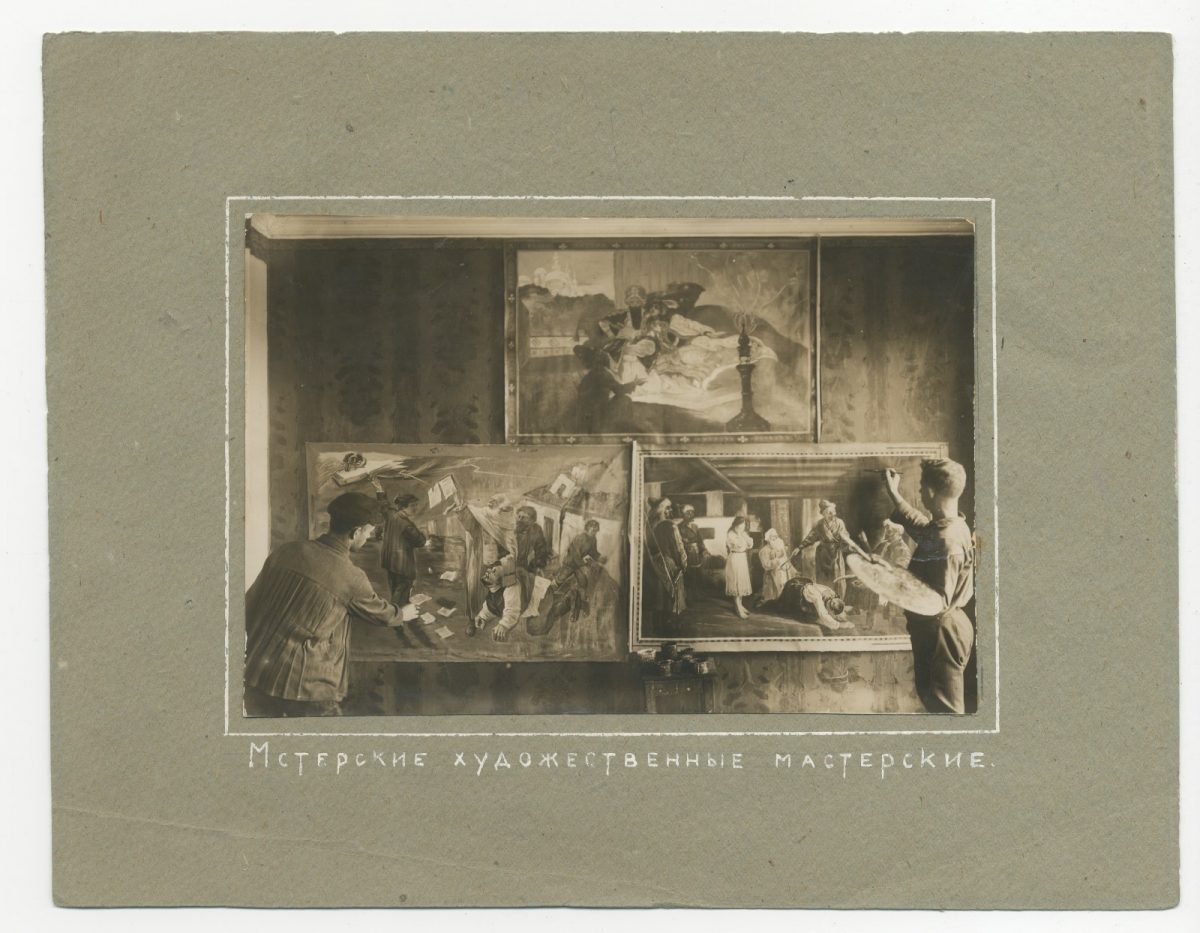 Следующий раздел выставки посвящен периоду 1923–1929 годов. В это время образовательную политику в Мстёре определяли авангардисты, развившие тесное сотрудничество с ВХУТЕМАСом, позднее – ВХУТЕИНом. Главным в этот период стала попытка реализовать программу Левого фронта искусств (ЛЕФ). Экспозиция знакомит с творчеством педагогов и учеников Мстёрской художественной коммуны того времени. Здесь представлены картины Виктора Пальмова в технике коллажа, уникальная работа члена Общества молодых художников (Обмоху) Сергея Светлова из частного собрания, его альбом, найденный в США Ильдаром Галеевым, театральные эскизы Виктора Киселёва, сделанные для постановки спектакля «Мистерия-Буфф» 1921 года, редчайшие журналы, издававшиеся в Мстёре, а также характерная ученическая графика Александра Богданова.