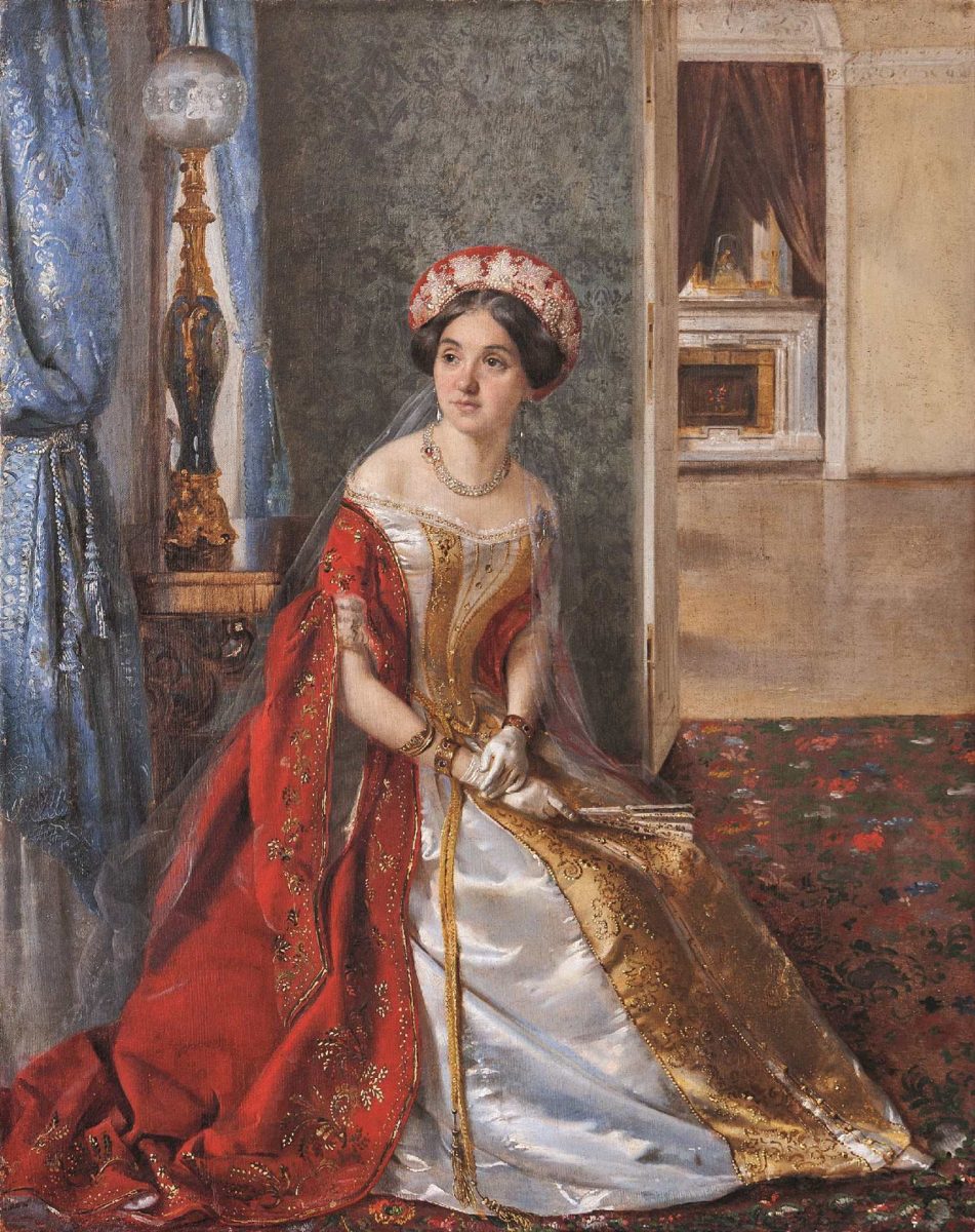 Рассказ начнется с раздела с пушкинским названием «Ветошь маскарада» и откроется эпохой Николая I – большого любителя маскарадов и эффектных костюмов. В экспозиции будет представлен портрет императора в рыцарских доспехах. Далее перед зрителем появятся «турки», «гишпанцы» и «арапы», Татьяна и Онегин, скоморохи и петрушки, а также придворные фрейлины в «русских костюмах». Так раскрывается широкий диапазон маскарадных ролей, обязанных своим появлением литературе и истории, географии и этнографии. Отдельный блок будет посвящен русскому стилю, принимавшему различные формы на протяжении двух столетий. Апогеем его развития стали знаменитые придворные балы XIX–XX веков, особенно бал 1903 года в честь 290-летнего юбилея дома Романовых. Посетители увидят созданный для этого празднества кокошник великой княгини Ксении Александровны из собрания Омского государственного историко-краеведческого музея.