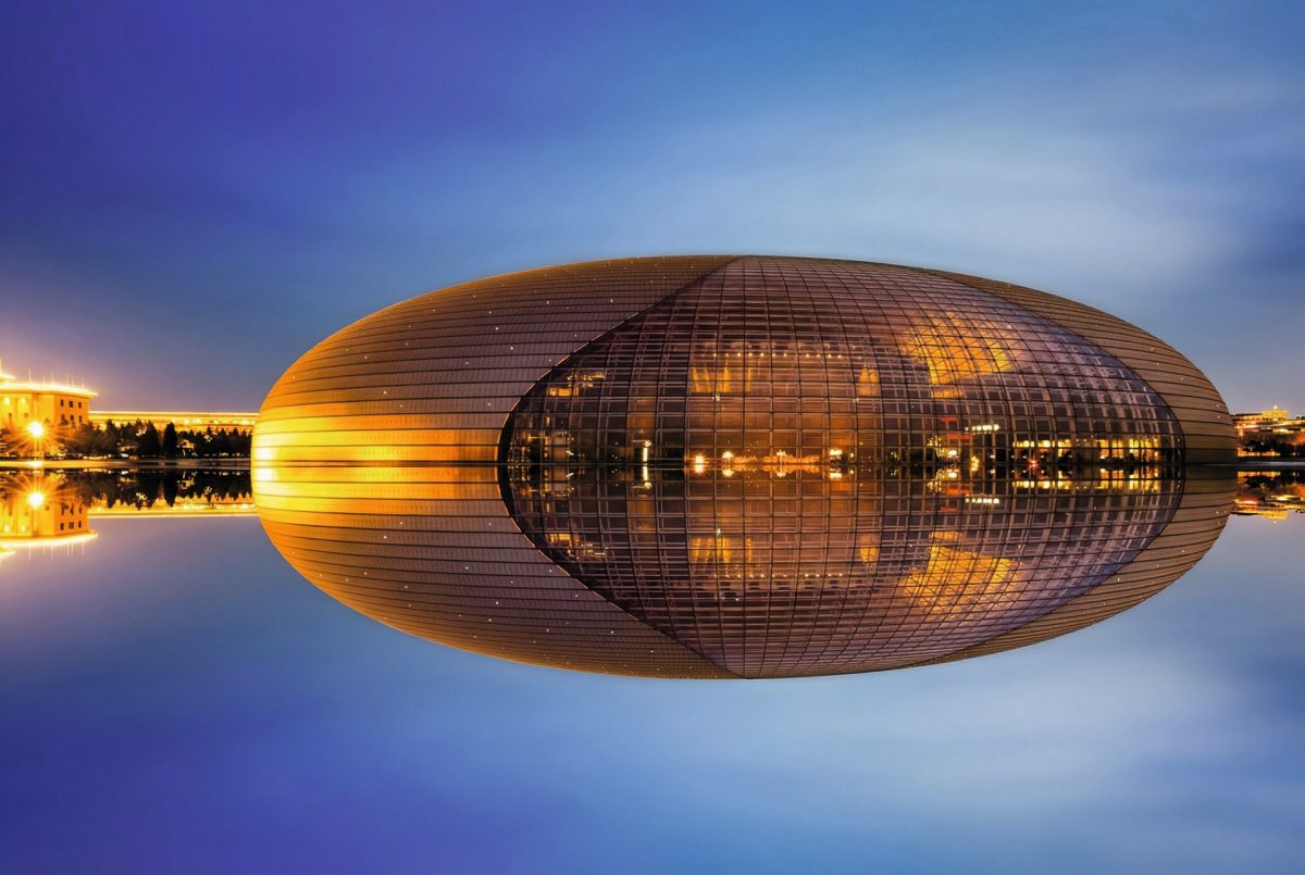 Это футуристическое здание, построенное в 2007 году по проекту французского архитектора Поля Андрё, для китайской столицы с ее традиционной застройкой стало настоящей сенсацией. Благодаря полусферической форме оно получило прозвище Яйцо. 46-метровая конструкция из титана и стекла окружена искусственным водоемом, а попасть в нее можно через подводный туннель. Внутри оборудованы три зала почти на 5,5 тыс. зрителей. Здесь можно послушать классическую оперу, современный концерт, увидеть драматический спектакль или постановку традиционного китайского театра.
