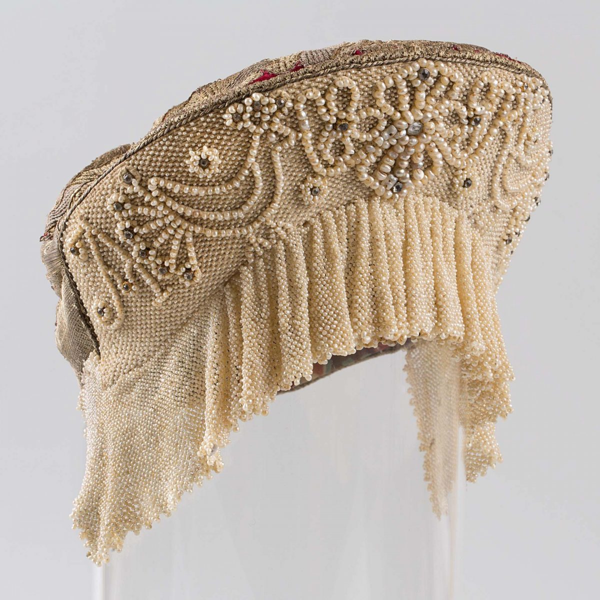Экспозиция занимает десять залов Хлебного дома, и в каждом раскрывается одна из тем, поднятых кураторами, – от разнообразия головных уборов, украшений до богатства материалов и приемов народного рукоделия, от роли предметов в обрядах свадьбы и крещения до красоты праздничного костюма разных регионов России. В зале «Красота по-русски» можно услышать музыку фольклорного ансамбля «Толока», участники которого уже много лет изучают нематериальное наследие и музыкальные традиции в экспедициях по русским деревням. Атмосферу отечественной культуры XIX столетия воссоздает зал «Поэтика народного костюма: живопись и театр». Здесь представлены полотна русских художников, театральные эскизы и костюмы. Отдельный зал «Поехали на ярмарку!» предназначен для интерактивного семейного «путешествия» по русским городам в поисках старинных головных уборов. В одном из последних залов на экране показаны фрагменты фильма Рустама Хамдамова «Мешок без дна». В центре – арт-объект со съемочной площадки, головной убор Царевны, созданный художником по костюмам Дмитрием Андреевым по мотивам старинного свадебного венца. В зале «Новая русская старина» можно увидеть современные работы: текстиль, традиционные костюмы, украшения из жемчуга и бисера, фарфор и кукол, даже арт-объект из вологодского кружева и металла.