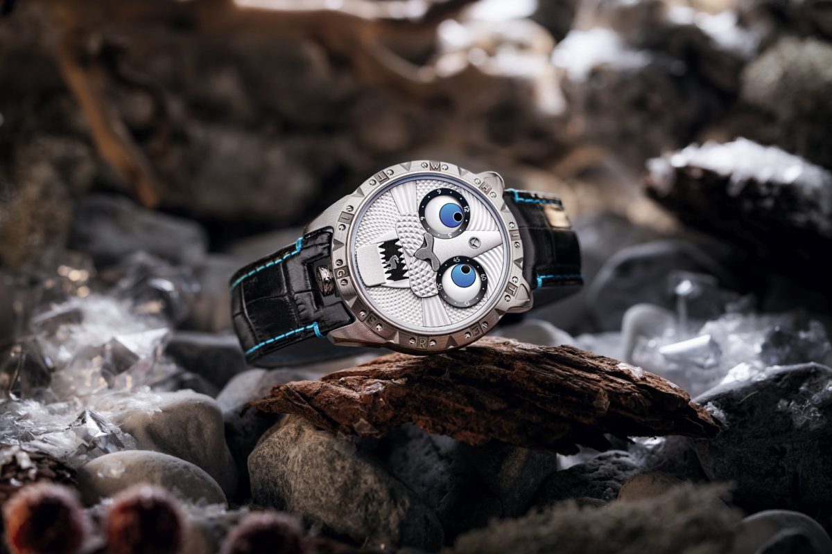 «Белый тигр» Константина Чайкина – уникальный наручный ристмон, посвященный крайне редким тиграм, которые лишены типичной желто-оранжевой окраски, а также мифологическому стражу Запада из китайской космологии. В китайской философии Белый тигр символизирует белый цвет, стихию металла и вечерние сумерки. Именно поэтому для корпуса уникальных часов автор выбрал титан – белый металл. Голубые глаза-индикаторы и клыкастая пасть, которая закрывается в полночь и открывается к рассвету, формируют яркий и запоминающийся образ. Внутри скрывается мануфактурный механизм с микроротором и интегрированной джокер-индикацией, а в пасти появляются пиктограммы «добычи» грозного хищника – ровно столько же, сколько дней в неделе. Циферблат украшен рельефным гильоше и многослойным лаковым покрытием, верхние ушки корпуса стилизованы под уши хищника.