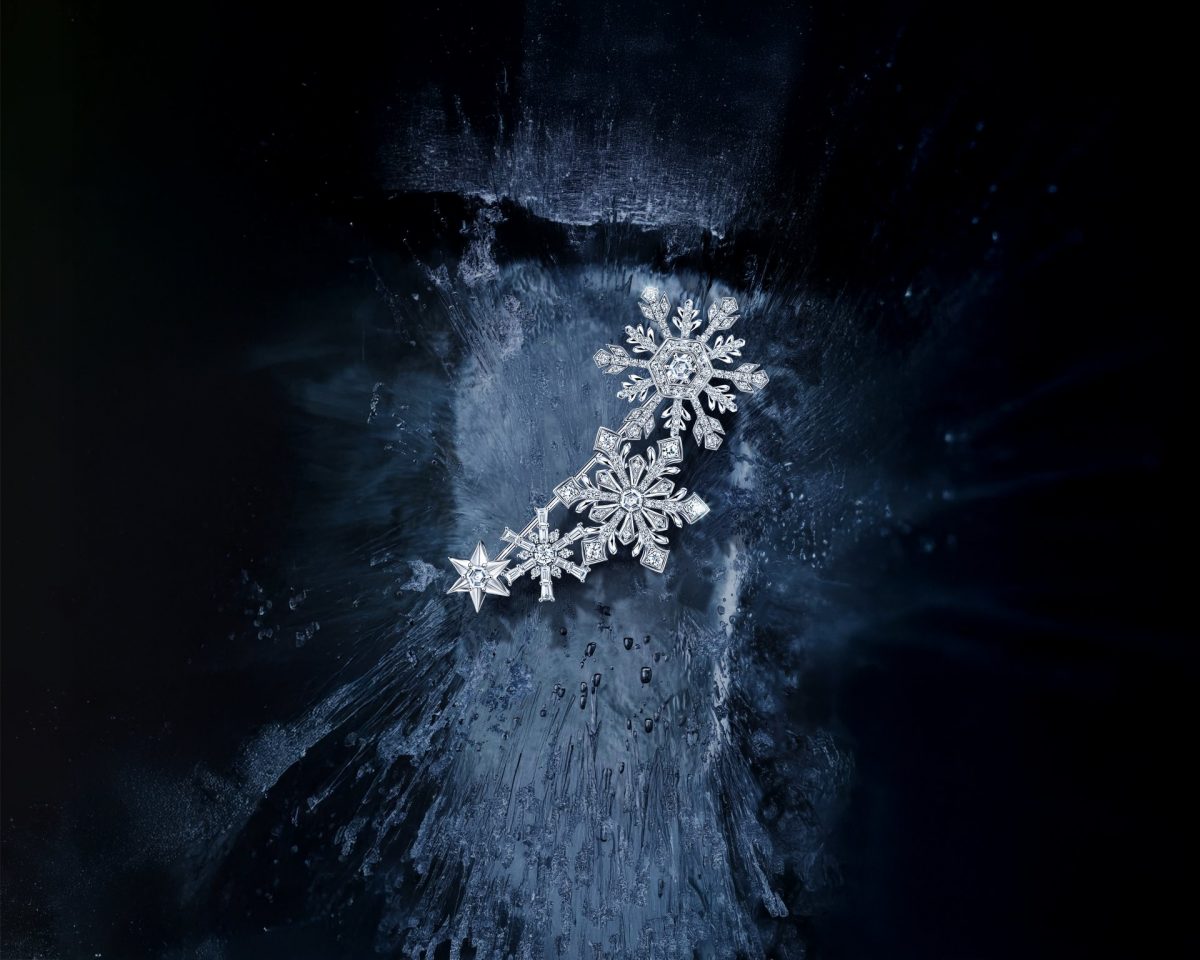 Белое золото с россыпью бесцветных бриллиантов – беспроигрышный вариант для украшений зимнего сезона. Новая коллекция российской компании MIUZ Diamonds «Альма» названа в честь Альмы Пиль – великого дизайнера фирмы Фаберже. Именно ей принадлежит дизайн бриллиантовой изморози на брошах, подвесках и императорских пасхальных яйцах (Winter Egg было продано на Christie’s в конце прошлого года). Ювелиры MIUZ Diamonds творчески переработали эту блестящую идею, воплотив в новых украшениях морозное дыхание, формирование уникальных кристаллов снежинок, рост сосулек. Помимо белого золота в коллекции использованы горный хрусталь, голубые топазы, жемчуг, а также выращенные бриллианты, причем как бесцветные, так и голубые. Особенно эффектно смотрятся броши-снежинки, изысканные, неповторимые и абсолютно симметричные.