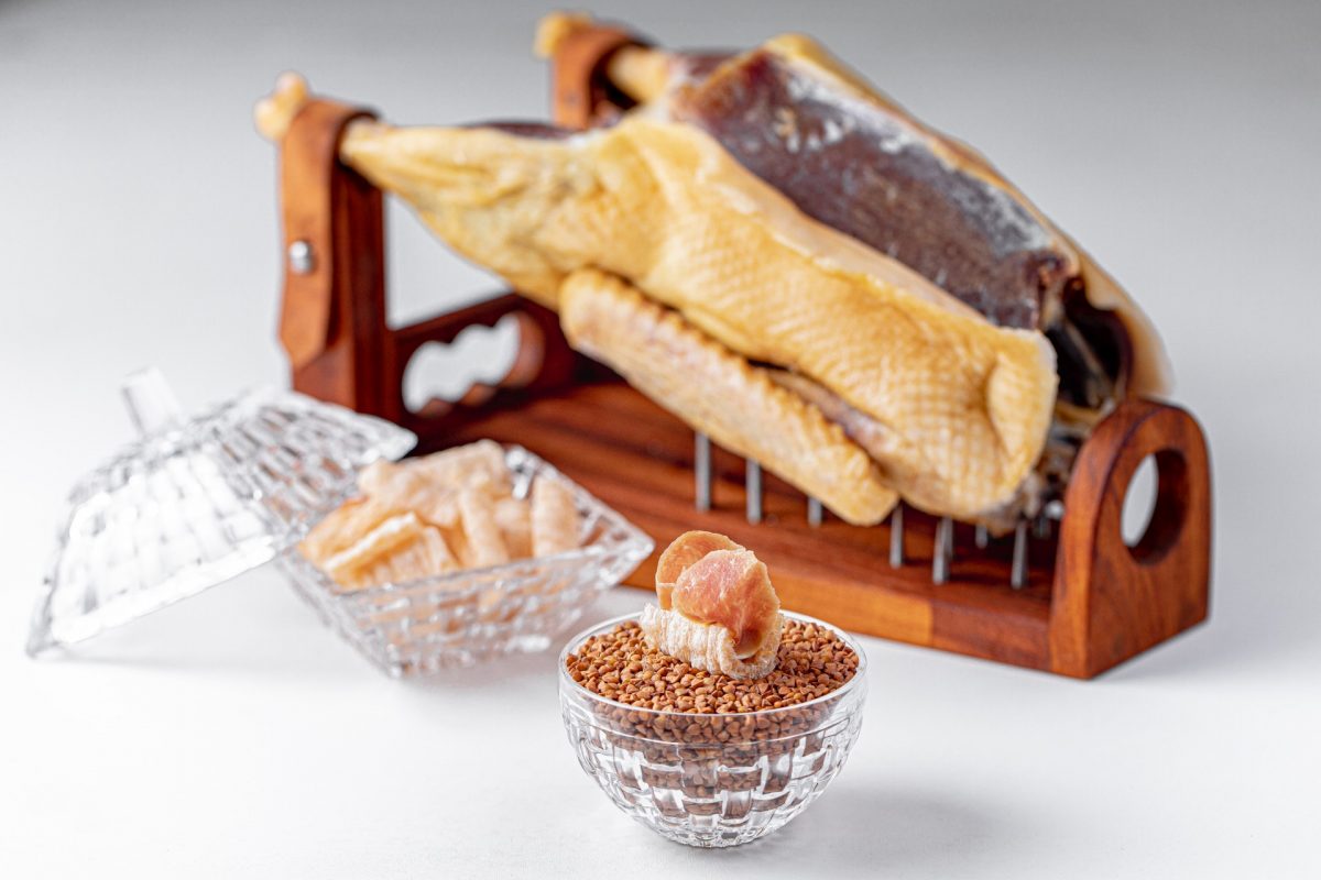 Каждое из блюд представляет один из городов, среди которых Юрьев-Польский, Боголюбово, Углич, Мышкин и другие. Закуска «Гусь хрустящий», посвященная Гусь-Хрустальному, – гречневая трубочка с томатным мармеладом, грибной сметаной и вяленым гусем. Каша из ферментированной пшеницы, которая имеет кофейный вкус за счет сильной обжарки и, как на праздничном столе на Руси, подается с орехами, клюквенным изюмом и ложкой ванильного мороженого. Муромский калач в авторской интерпретации, так как оригинальная технология была утрачена много лет назад, приносят к супу из раков, рецепт которого отсылает к поваренной книге XIX века. Подкопченная стерлядь – напоминание о Рыбинске, чей герб украшает эта рыба. На десерт от шеф-кондитера Елены Язовой на «скатерти-самобранке» появляются парёнка из репы, лузга, узвар из шиповника, баранки-обваренки с маком и другие лакомства уникальной рецептуры.