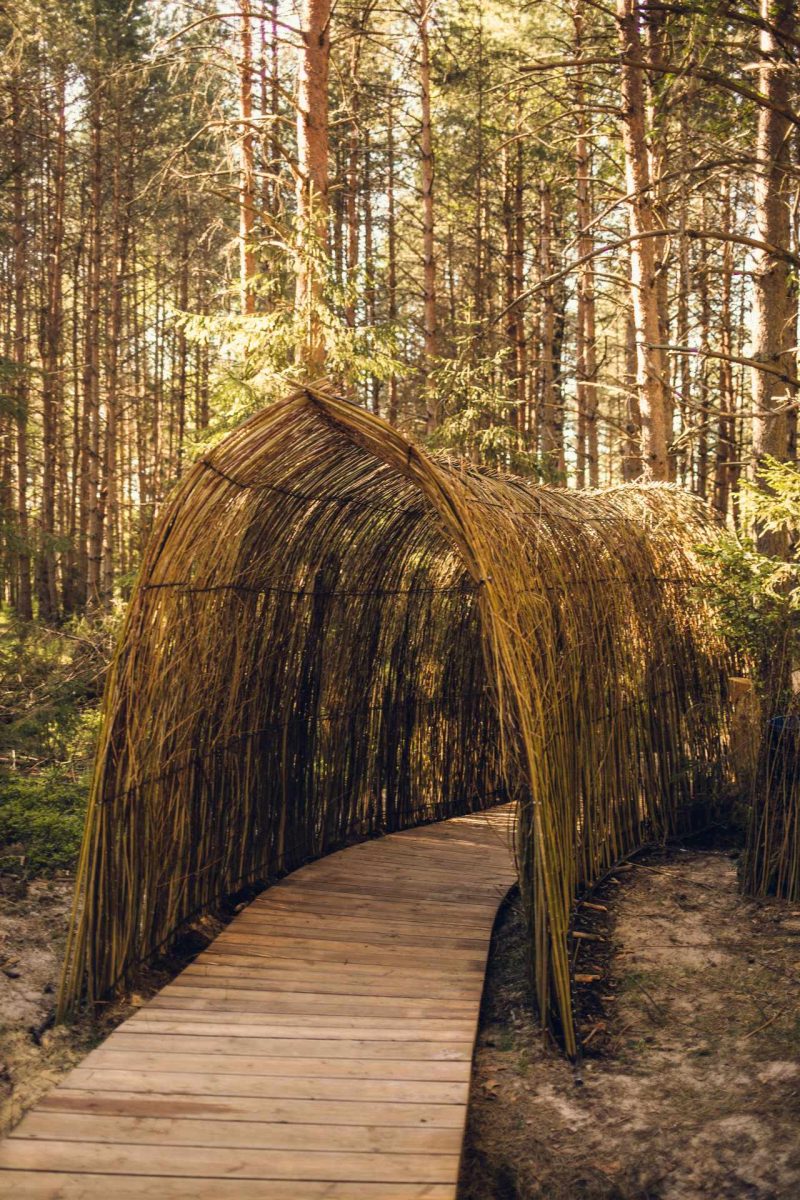 В основе тропы – интеграция телесных, сенсорных и метафорических практик, направленных на восстановление психоэмоционального ресурса. Маршрут протяженностью 1200 м включает 14 арт-объектов, каждый из которых символизирует определенное внутреннее состояние или этап жизненного пути. Тропа разделена на два этапа – «Очищение» и «Наполнение» – и сопровождается иммерсивным аудиоспектаклем, созданным специально под маршрут. Каждый объект активирует одно из чувств: слух, зрение, осязание, обоняние, интуицию. Путь выстроен как последовательная система переходов: от снятия ментального напряжения к восстановлению контакта с собой, от работы с тревогой и сомнениями – к принятию, зрелости и родовой памяти. Проживать можно в экодомах отеля «Ново-Окатово», где есть банный комплекс с купелью на берегу Волги, проводятся занятия йогой, стояние на гвоздях, медитации.