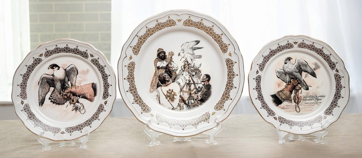 Причем, что особенно отрадно, возрождают культурное наследие не только такие гранды, как Императорский фарфоровый завод и «Мануфактуры Гарднеръ в Вербилках», но и молодые производства. Скажем, «Павлово-Посадская керамическая мануфактура», объединив традиции керамических производств восточного региона Подмосковья и уникальную художественную школу Павловского Посада (вспомним знаменитые платки), сделала одним из основных своих направлений как раз изображение природы и охоты. Понятно, что щедро позолоченные тарелки с вычурным дизайном двухсотлетней давности сегодня не всякий захочет видеть у себя на столе. Поэтому наряду с классическими сюжетами, выполненными в изобразительной манере XIX века, на посуде воспроизводится и вполне современная живопись с «портретами» животных. Есть и тонкая, аккуратная стилизация – например, декоративные тарелки художника-анималиста Вадима Горбатова с изображением исторических сцен соколиной охоты времен царя Алексея Михайловича взял в свою коллекцию Дарвиновский музей.