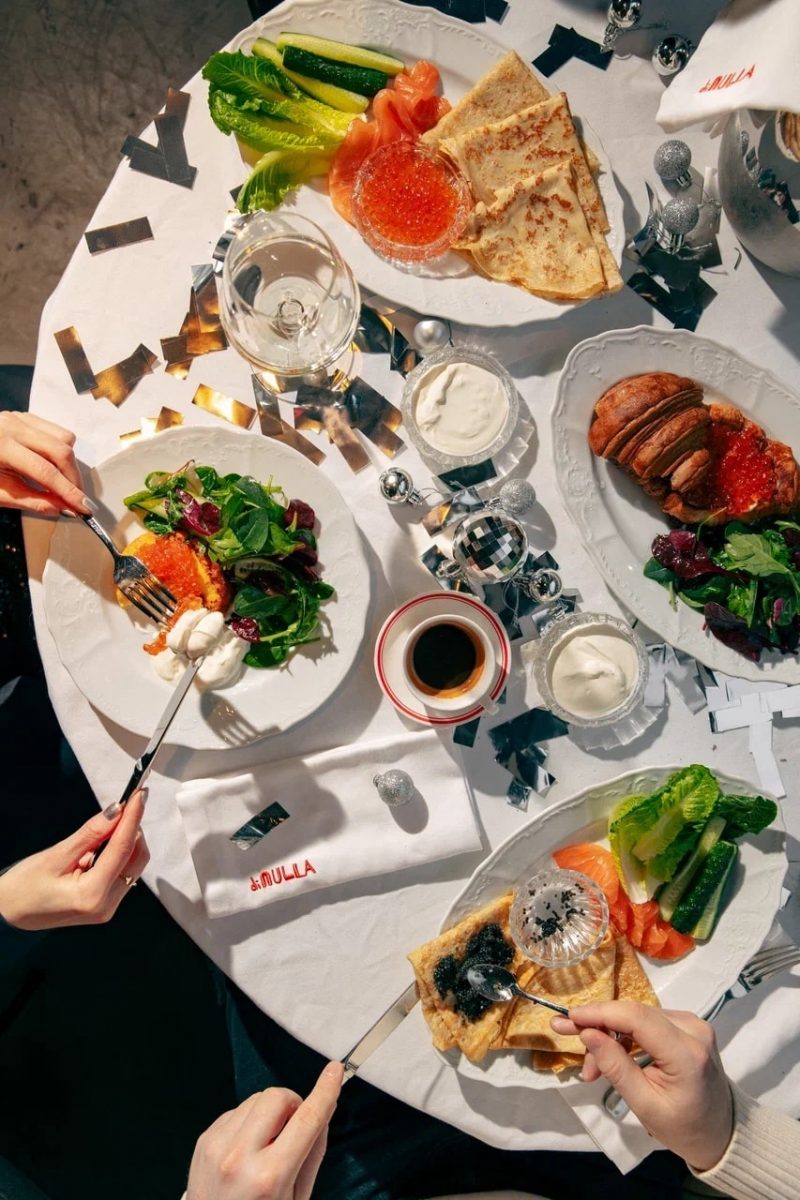 До 15 января действует новогодний special в ресторане Di Nulla. Классика утра – хрустящий круассан с воздушным сливочным маслом, который могут подать как с красной, так и с черной икрой. Тон вечеру задают закуски – сюкрин с крабом и рийет из лосося с красной икрой, где подкопченную рыбу оттеняет свежесть яблочного сидра. Оливье по семейному рецепту шеф-повара Андрея Смирнова, который готовят из трех видов мяса: фирменного ростбифа, копченой куриной грудки и говяжьего языка. И праздничная домашняя паста из ракушек конкилье в насыщенном сливочном соусе с щедрой порцией черной икры. В пару к ней не забудьте заказать бокал шампанского.