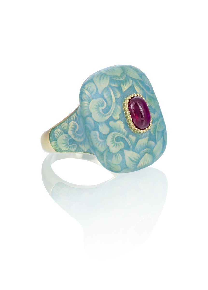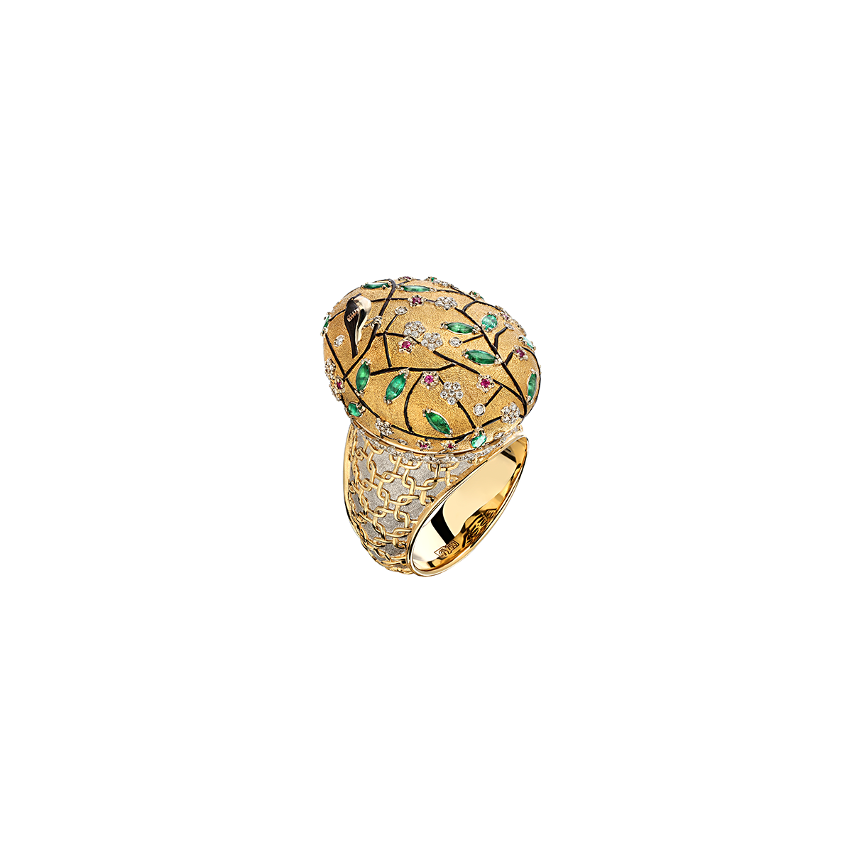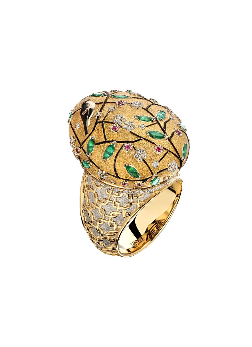 В разделе «Ювелирное искусство» – победители и лауреаты конкурсов Гохрана России, участники Hong Kong International Jewellery Show и Milano Jewelry Week, мастера, сотрудничающие со звездами первой величины. Свои новые коллекции покажут такие ведущие бренды, как ArgentoV, Izmestiev Diamonds, Alexey Zubov, ювелирное арт-ателье Dzhanelli, JEMAE, Мастерская Агафоновых, VR Jewellery, а также ювелирный художник мирового уровня Ильгиз Фазулзянов. Делая «Шаг на Восход», Style Avenue покажет коллекцию «Гипноз» – воплощение вековых представлений о сказочной силе и власти восточных правителей. Жемчужина коллекции – крупное кольцо с кварцем, четырьмя гранатами и золотыми растительными орнаментами на фоне черненого серебра. Кольцо «Япония» из коллекции DEA (Gevorkyan) – дань уважения японскому саду. Ivan Markov Jewelry покажет кольцо «Сердце Востока» с крупным танзанитом огранки «сердце».