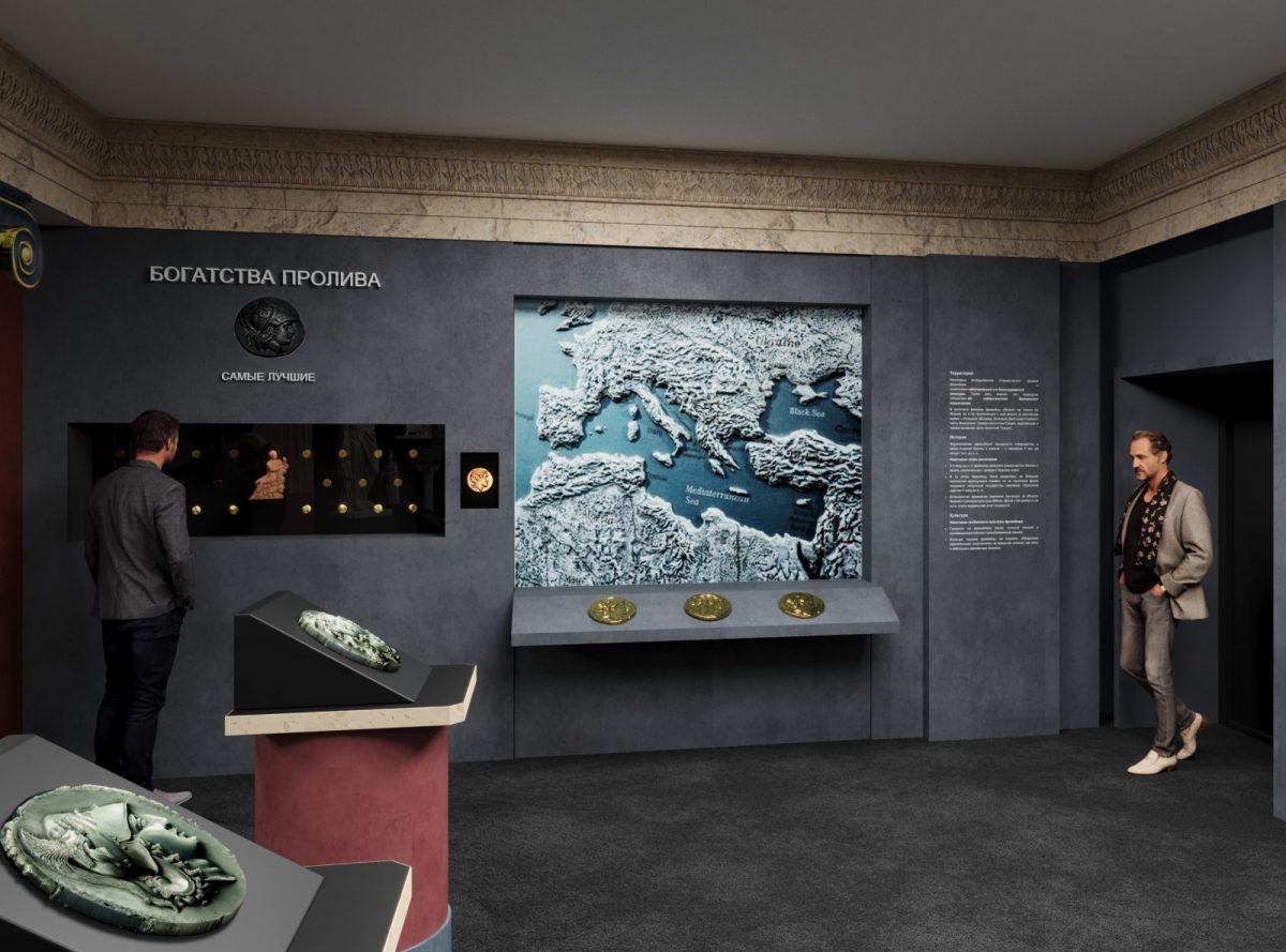 Иллюстрируют русскую антику представленные в экспозиции золотые, серебряные и бронзовые монеты древних городов Таманского полуострова, Крыма и других регионов Северного Причерноморья. Среди них – редкие монеты, известные только в одном экземпляре, шедевры античной чеканки, легендарное скифское и древнегреческое золото. Отдельного внимания заслуживают предметы, предоставленные музеями-партнерами (а это Государственный Эрмитаж, Государственный исторический музей и ГМИИ им. А. С. Пушкина): изображения богов, предметы поклонения, древнегреческая керамика, золотые ювелирные украшения, предметы обихода и даже античные детские игрушки. Среди экспонатов также: самая дорогая и знаменитая античная монета – статер Пантикапея с изображением сатира в три четверти, уникальный статер Архонта Гигиенонта, дошедший до нас в единственном экземпляре, золотые сокровища древнегреческих полисов и античных государств, которые были торговыми партнерами Боспора.