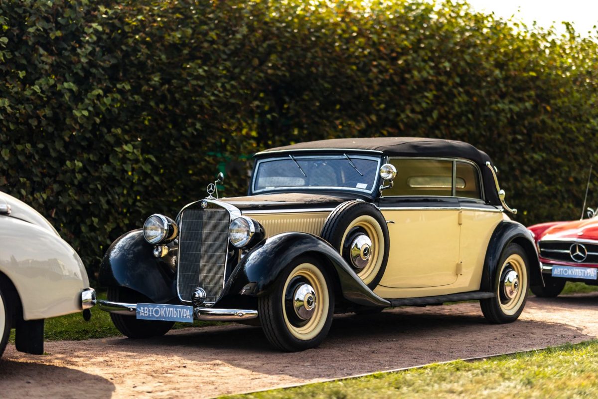 Второй ключевой экспонат – Mercedes-Benz 230 Cabriolet B (W143) 1939 года из коллекции вице-президента клуба Романа Штукина. Эта модель была одной из наиболее массовых во второй половине 1930-х и выпускалась в нескольких вариантах кузова, однако «кабриолет Б» относится к самым редким и престижным версиям – это четырехместный двухдверный автомобиль со складной мягкой крышей.