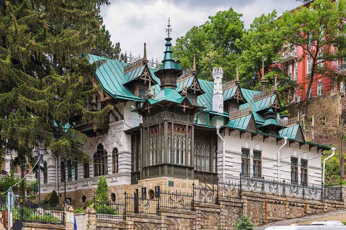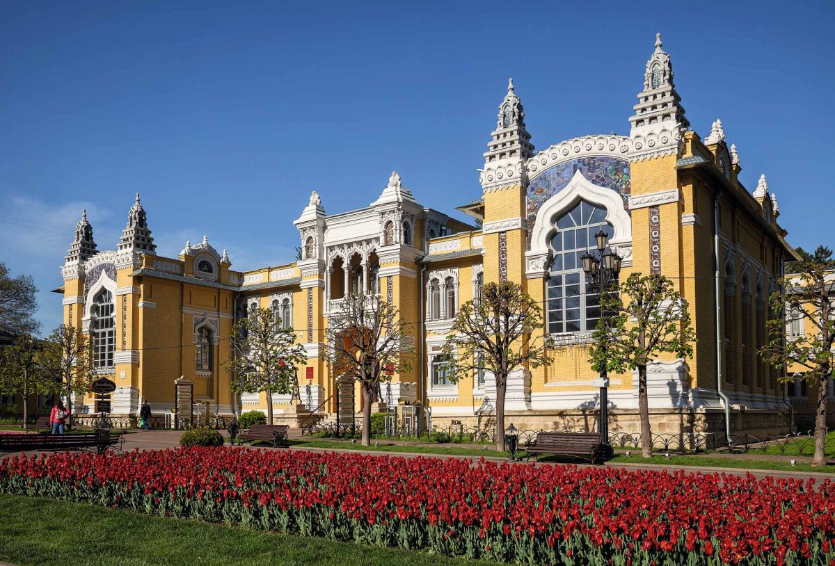 Первый пункт – питьевая галерея, построенная в лаконичном неоготическом стиле архитектором Самуилом Уптоном, автором подобных сооружений на других ставропольских курортах. Чуть дальше расположено здание Цандеровского института механотерапии, возведенное в 1902 году в неожиданном фахверковом стиле. Считается, что это чуть ли не первый в России фитнес-центр – десятки разработанных шведским врачом-ортопедом Густавом Цандером аппаратов доступны и любопытствующим туристам. Два самых заметных имитируют верховую езду на лошади и верблюде: многие вспомнят их по снимавшейся здесь сцене фильма «Любовь и голуби».