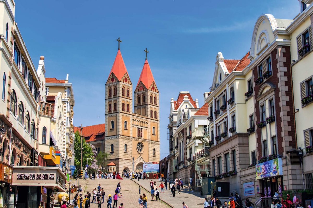 В Циндао, крупнейшем городе провинции (хотя столица ее – Цзинань), случается первый разрыв шаблона. Главная достопримечательность мегаполиса с населением более 9 млн человек, наравне с мостом Чжяньцяо, уходящим в Желтое море (это и не мост даже, а пирс, построенный в 1892 году, всего через год после основания города), – католический собор Святого Михаила, символ немецкой главы в истории Циндао. Германия получила стратегический морской порт в концессию в конце XIX века и управляла им до Первой мировой войны. Тогда были построены многие здания в историческом районе Шинань, где легко почувствовать себя почти как в Мюнхене. Собор же возвели в 1930-х, и там до сих пор проходят службы.