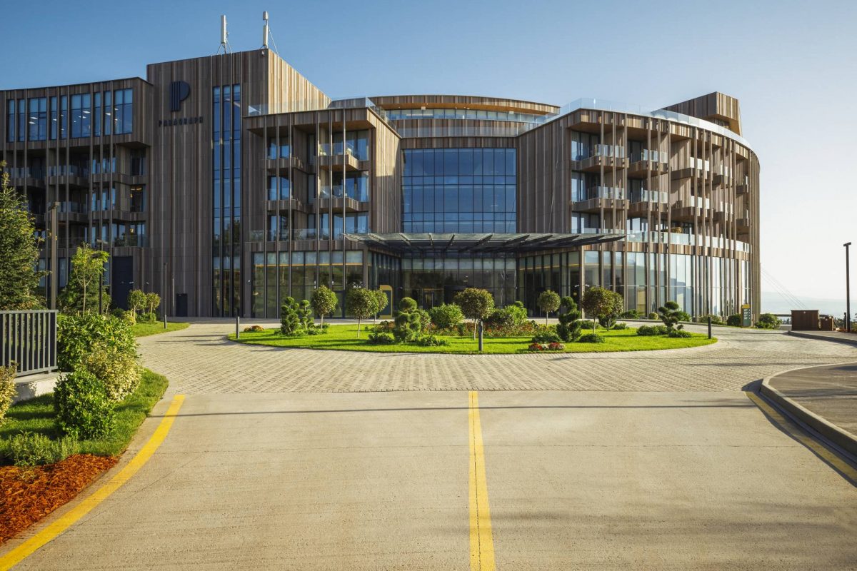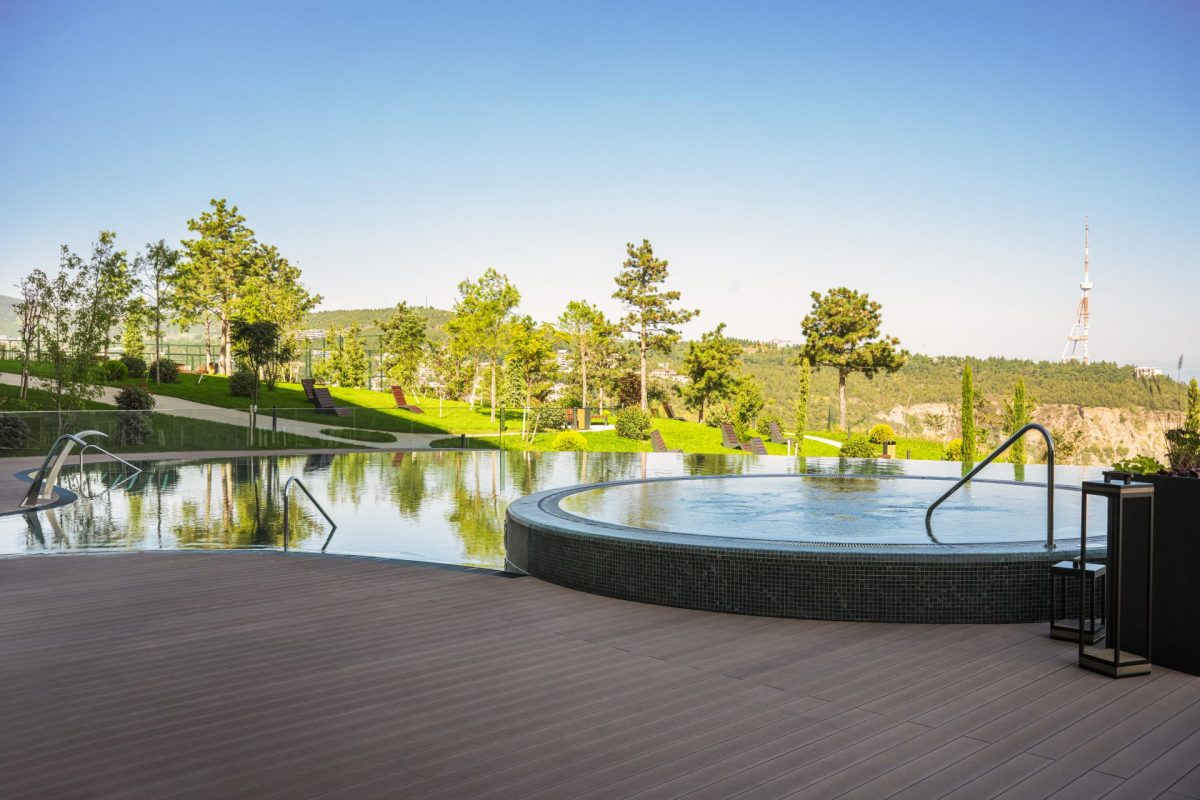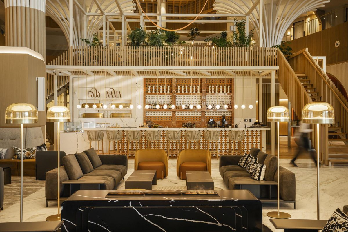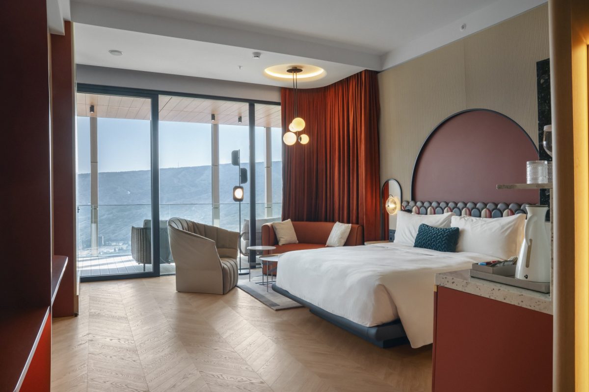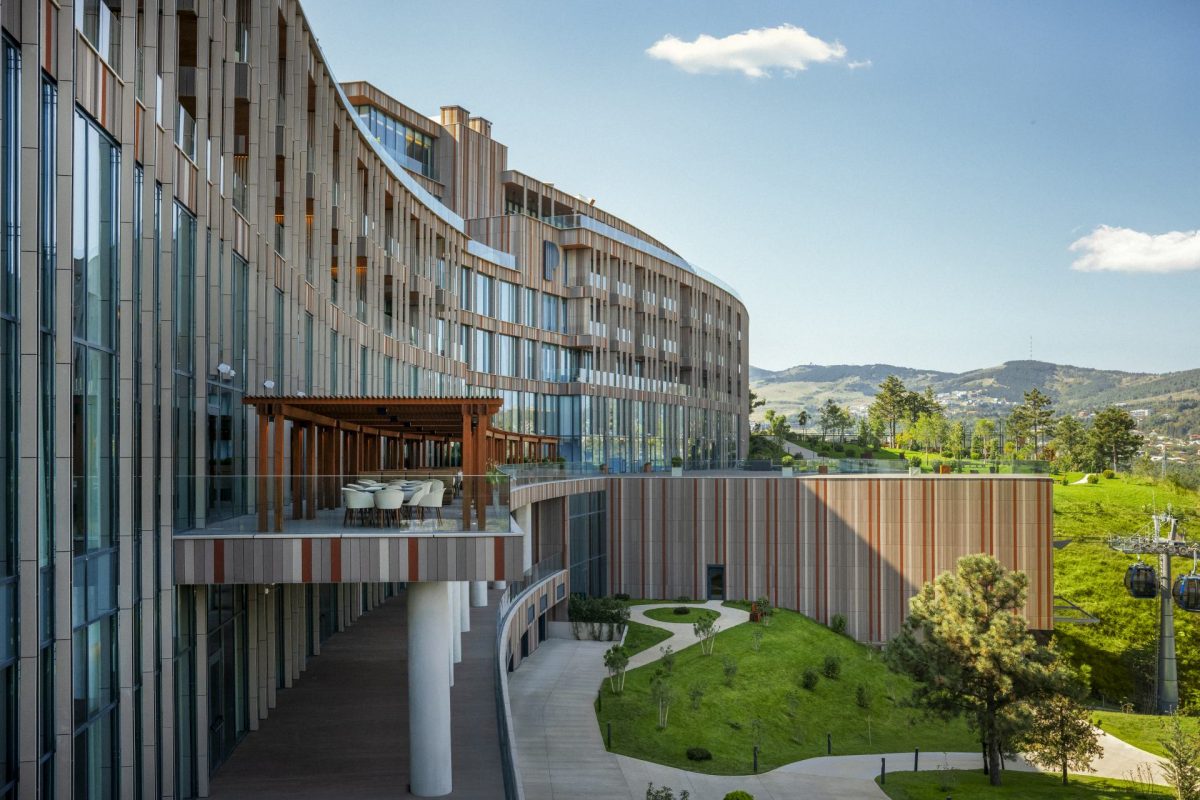 Выразительные архитектурные линии, спроектированные компанией Dephani AD, вторят контурам гор, а интерьеры от HAT Design Paris объединяют современную элегантность с грузинскими растительными мотивами.